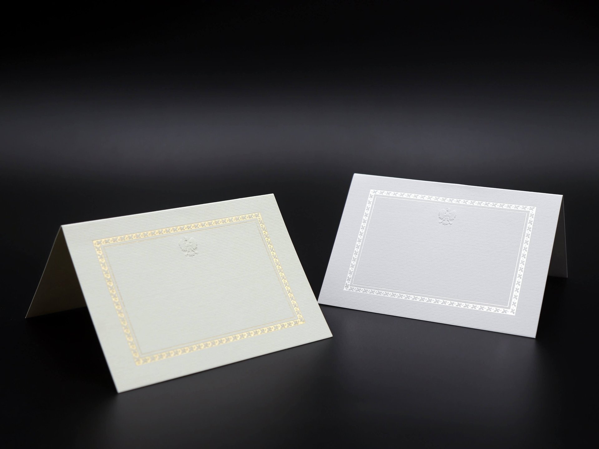 Zaproszenia z kopertami, życzenia świąteczne, wpis do księgi pamiątkowej, obwoluty, teczki, blankiety koperty, wizytówki